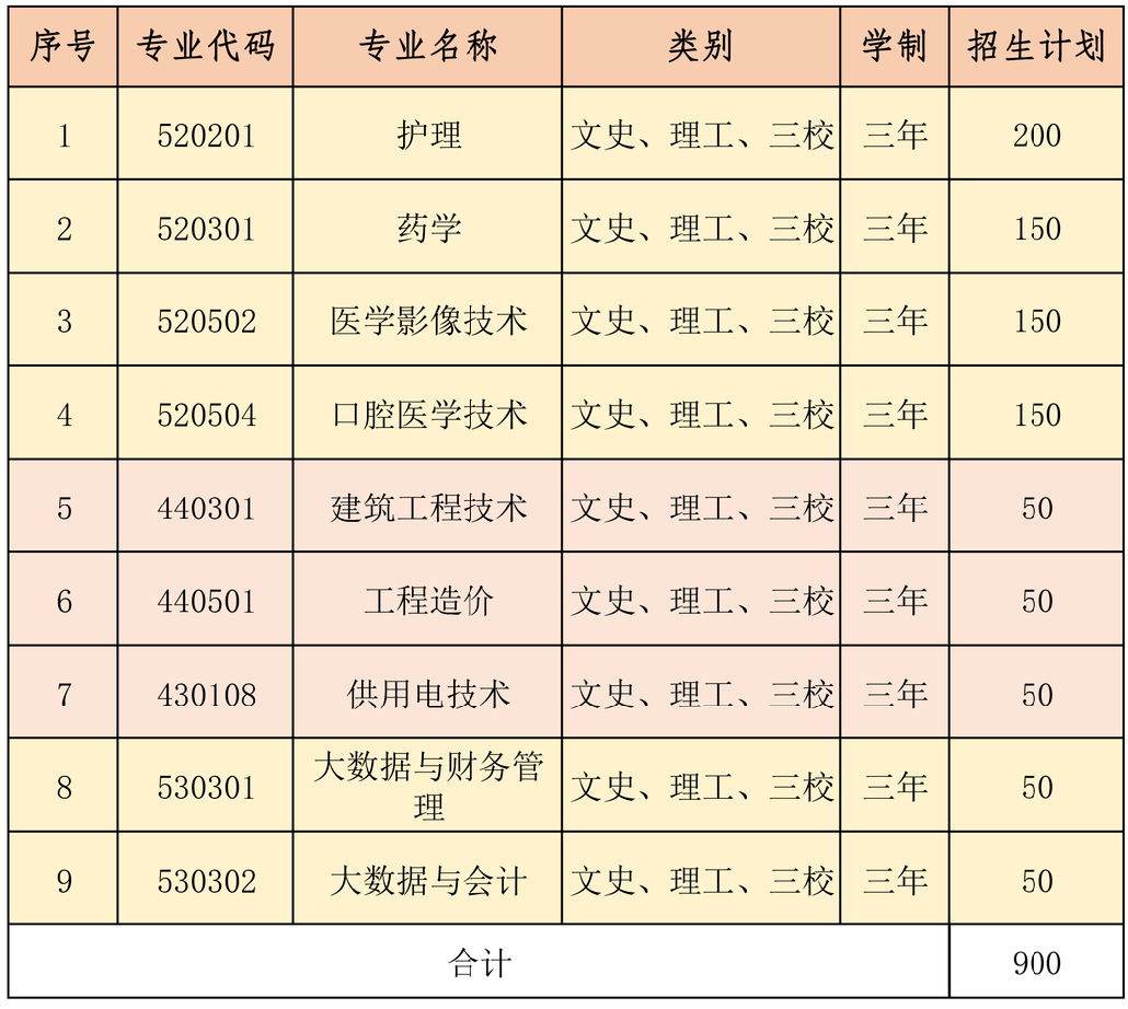 云南三鑫职业技术学院是经云南省人民政府批准,国家教育部核准备案,国家计划内统一招生,具有独立颁发国家承认学历文凭资格的全日制高等职业院校。 学校规划占地面积1300余亩,投资规模14.6亿元。现有教师400余人,副高以上职称教师68人,在校学生9000余人,面向云南、四川、重庆、贵州、广西等省市招生。 学校成立医药健康学院、人文艺术学院、工程与管理学院、公共安全与应急管理学院、创新创业学院、现代康养服务学院、继续教育学院、预备华为ICT学院,各项办学条件达到国家高职院校办学标准,满足人才培养所需。 学校坚持社会主义办学方向,确立“求正超越”的办学理念,秉承“把父母之爱给予学生,成德技之才回报社会”的办学宗旨,按照“标准建校、名师立校、质量兴校、特色强校、机制增效、依法治校”的办学思路,为区域社会经济发展培养了一大批德才兼备的高素质职业技能人才。 二、关于单招 1.什么是单招 高职单招是普通高等职业教育单独考试招生的简称,是指经教育主管部门批准实施单招的院校,面向考生自主进行命题、自行组织考试、自主确定录取线的一种普通高考招生形式。云南省单招是为进一步推进高职院校分类考试和完善“文化素质+职业技能”评价的重要招生考试改革。单招由办学质量高,有示范效应的高职院校承担,单招考试有利于学校了解学生的综合素养,掌握学生的思想品德,发现学生的专业潜质。 毕业颁证:按国家招生管理规定录取并取得我校正式学籍的学生,在校期间完成教学计划规定的理论和实践教学环节,符合毕(结)业条件者,颁发相应学历证书,并报教育部电子注册。颁发学历证书学校名称:云南三鑫职业技术学院,证书种类:毕业证书与2023年6月全国统考录取的考生相同,均为普通高等学校全日制专科毕业证书。 2.单招对象 通过2023年高考报名及资格审核的考生均可报考高职单招,含文科考生、理科考生、三校生。 3.报名条件 通过2023年高考报名的考生均可报考高职单招。 4.报考时间及方式 (1)报名时间 具体以云南招考频道通知为准。 (2)报考方式 登录云南省招考频道进入“工作网”,通过“普高志愿填报”功能进行报考,并按规定时间到确认点进行签字确认。 (3)体检 参加高职单招的考生必须参加县、市、区招考办统一组织安排的普高体检,否则不能参加录取。 (4)考试方式、时间及地点 继续推进高职分类考试招生和“文化素质+职业技能”评价方式,单独考试招生方式、时间及地点另行通知。 (5)录取 根据总成绩,按照单独招生计划“总分优先,遵循志愿”的原则,提出拟录取考生名单报云南三鑫职业技术学院单招工作领导小组审核后报请云南省招生考试院审核。 经省招生考试院审核批准,我校于规定时间内办理录取手续后,陆续发放录取通知书。 三、单招招生专业 四、考试办法及方式 (一)普通高中学业水平考试成绩量化和职业适应性测试普通高中应(往)届毕业生不分文理科,实行“普通高中学业水平测试成绩+职业适应性测试”;普通高中学业水平考试量化成绩满分220分,职业适应性测试为200分,总分420分。 1.“普通高中学业水平考试”共11门学科(语文、数学、外语、思想政治、历史、地理、物理、化学、生物、信息技术及通用技术),按考生每个科目最好成绩进行量化(A等20分、B等16分、C等12分、D等8分),量化分数满分为220分。 2.职业适应性测试:综合素质面试(80分)+专业适应性测试(120分)。 (1)综合素质面试:主要考查仪容仪表(形象形体)、精神面貌、文化素养、语言表达、逻辑思维、心里素质、社会综合适应能力等。各专业可根据本专业实际需要制定具体的面试内容、标准和要求。 (2)专业适应性测试:主要考察学生思想观念(包括职业意识、专业思想、就业态度等),以及对所选专业的认识、学习志向与兴趣、个人爱好特长和专业潜质及学生对所选专业其他相关素质的展示等。 (二)三校生应(往)届毕业生考试 三校生应(往)届毕业生考试采取“文化素质+职业技能”的方式进行考试,其中:文化素质考试为220分,职业技能测试为200分,总分为420分。 1.文化素质考试 (1)考试科目涉及为语文、英语、政治,考试时长为150分钟。 (2)文化素质考试结束后,根据考生得分,按不低于招生计划的2倍确定面试名单并及时公布参加职业技能测试考生名单。 (3)具体考试时间安排可详见本校网站公告。 2.职业技能测试 (1)职业技能测试以测试学生专业知识和技能水平为主。根据专业实际,通过面试问答、技能展示、专业实操方式等进行;凡在中等职业教育学习阶段获得过与所学专业相关的职业技能证书,或参加学生职业技能竞赛获前三等奖的考生,均给予不同程度的专项加分,具体加分分值将根据职业证书等级、赛事级别和获奖等次另行确定,并在考试前30天予以公示。 (2)测试的具体时间安排详见本校网站公告。 (三)考核成绩计算办法 1.普通高中应(往)届毕业生考试总成绩为:学业水平测试成绩+职业技能测试成绩 2.三校生应(往)届毕业生考试总成绩为:文化素质考试成绩+职业技能测试成绩 (四)考试方式 我校2023年单独招生考试由学校自行组织,考试方式原则上采用网络远程测试。 五、资助政策 学校高度重视经济困难学生的资助工作。为使经济困难的学生顺利完成学业,除国家划拨的专项资助资金外,学校每年还设